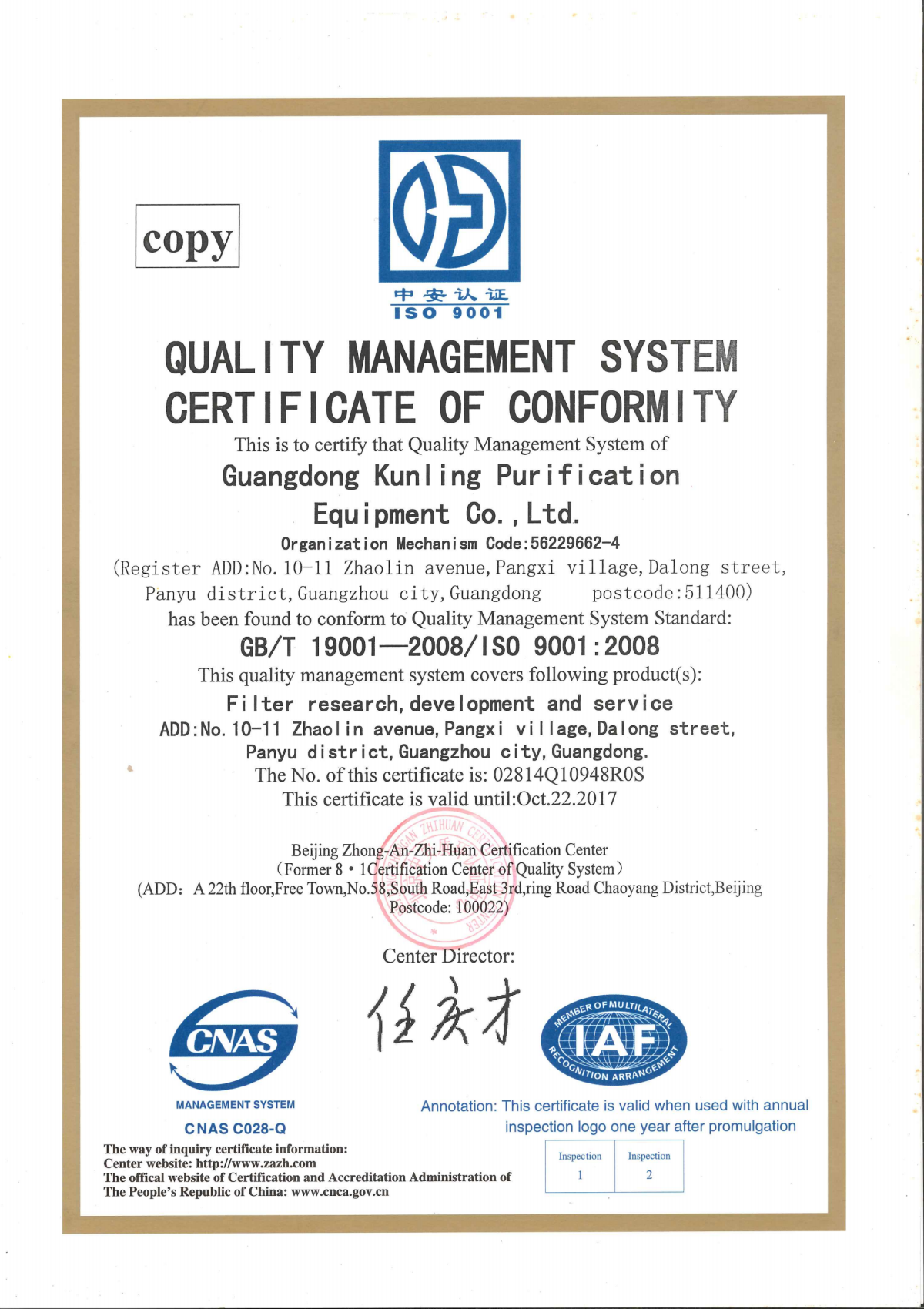 QUALITY MANAGEMENT SYSTEMCERTIFICATE OF CONFORMITY