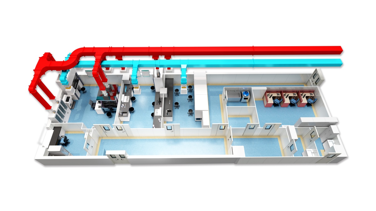 We design separate exhaust lines for grossing stations, stainers, and fume hoods. This prevents harmful gas backflow. - Temperature Zoning: